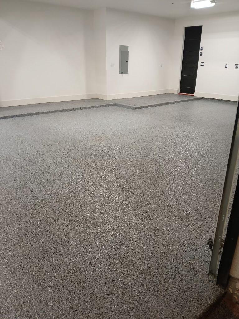 We can add anti-slip additives or use flake systems for better traction—especially important for wet areas.